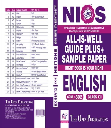Get 100% exam-ready with The Open Publications NIOS Class 12 English (302) All-Is-Well Guide Plus+ Sample Paper, strictly based on the latest syllabus 2025–26 & onwards. Perfect for both NIOS and State Open School students, this guide contains everything you need for complete preparation — from solved papers to writing skills.